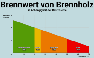 | Holzsorte | Dichte (g/cm³) | Brennwert pro RM (kWh/RM) | Brennwert pro SRM (kWh/SRM) | Brennwert pro KG (kWh/kg) |
